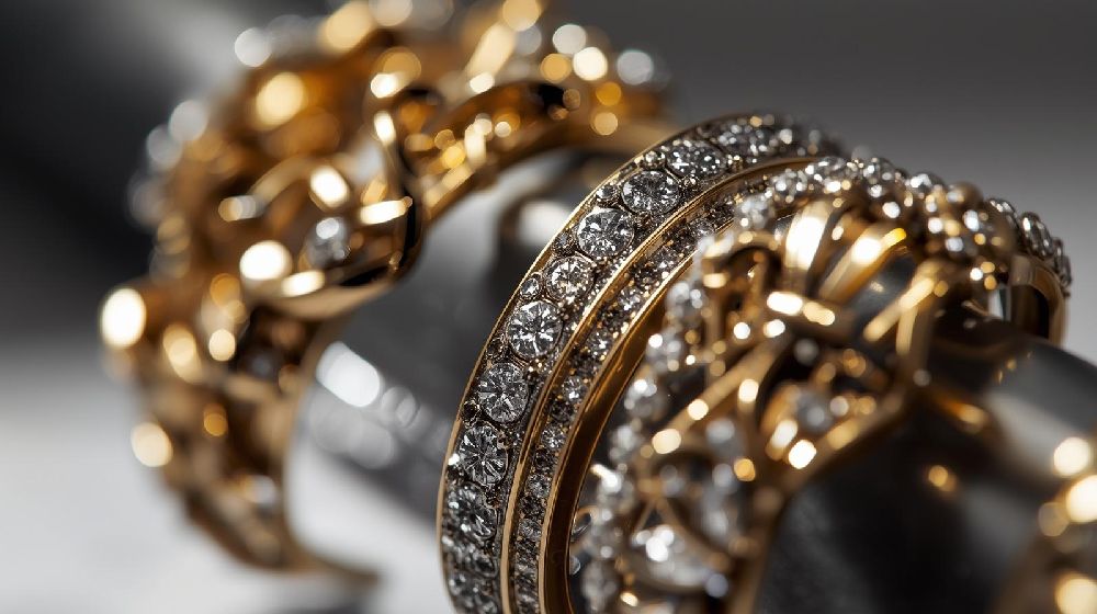 Two-tone combinations (yellow-white or rose-white) bring contrast and modern elegance to bold cuff designs.